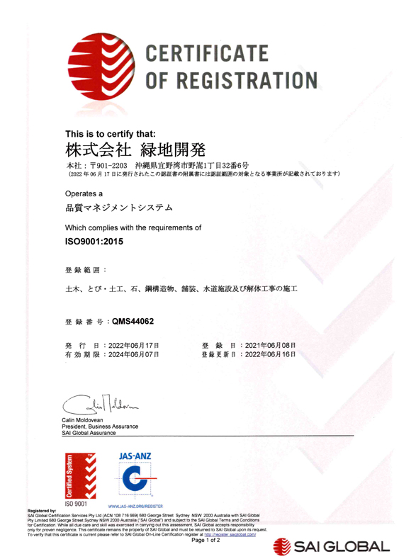 | 建設業許可 | 沖縄県知事 許可(搬-4)第12188号 | |||